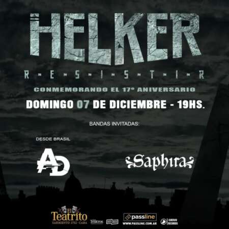 Helker celebra los 17 años del álbum Resistir el 7 de diciembre en El Teatrito, junto a Armored Dawn, de Brasil, y Saphira.